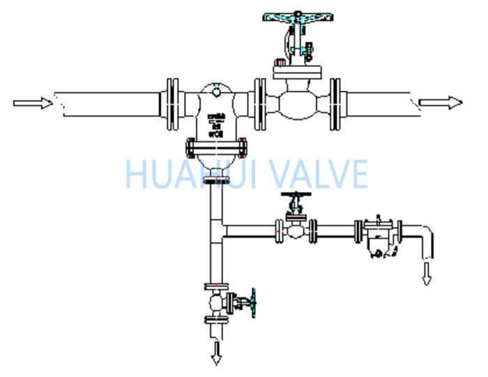 2、防止水(shui)擊,而分離出來的(de)凝結水通過下面(mian)的疏水器排出。